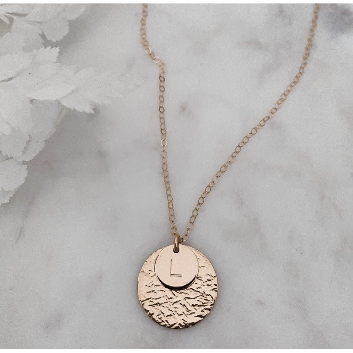 Textured Disc with Initial Necklace